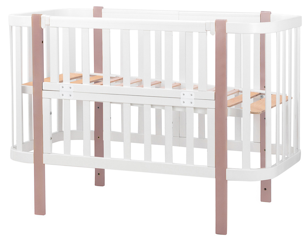 - Можливість використовувати ліжечко як приставне або дитячий диван, знявши бічну стінку.